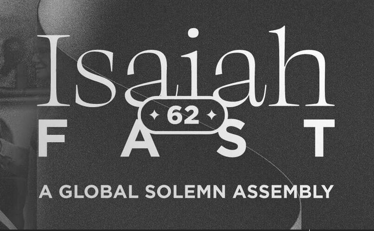 Une collaboration de plusieurs milliers de ministères appelle un million de croyants à participer à une assemblée solennelle mondiale (du 7 au 28 mai) pour jeûner de diverses manières et prier pour les desseins du Seigneur pour Israël ET pour lui demander de susciter 100 millions d'intercesseurs pour Israël selon sa promesse dans Esaïe 62:6 de souverainement "établir", "appeler" ou "marquer" des intercesseurs qui rappelleront au Seigneur ses promesses pour Jérusalem jusqu'à ce que Jésus revienne. Ésaïe 62:6 est une promesse de la fin des temps qui se manifeste de plus en plus maintenant sur la terre.